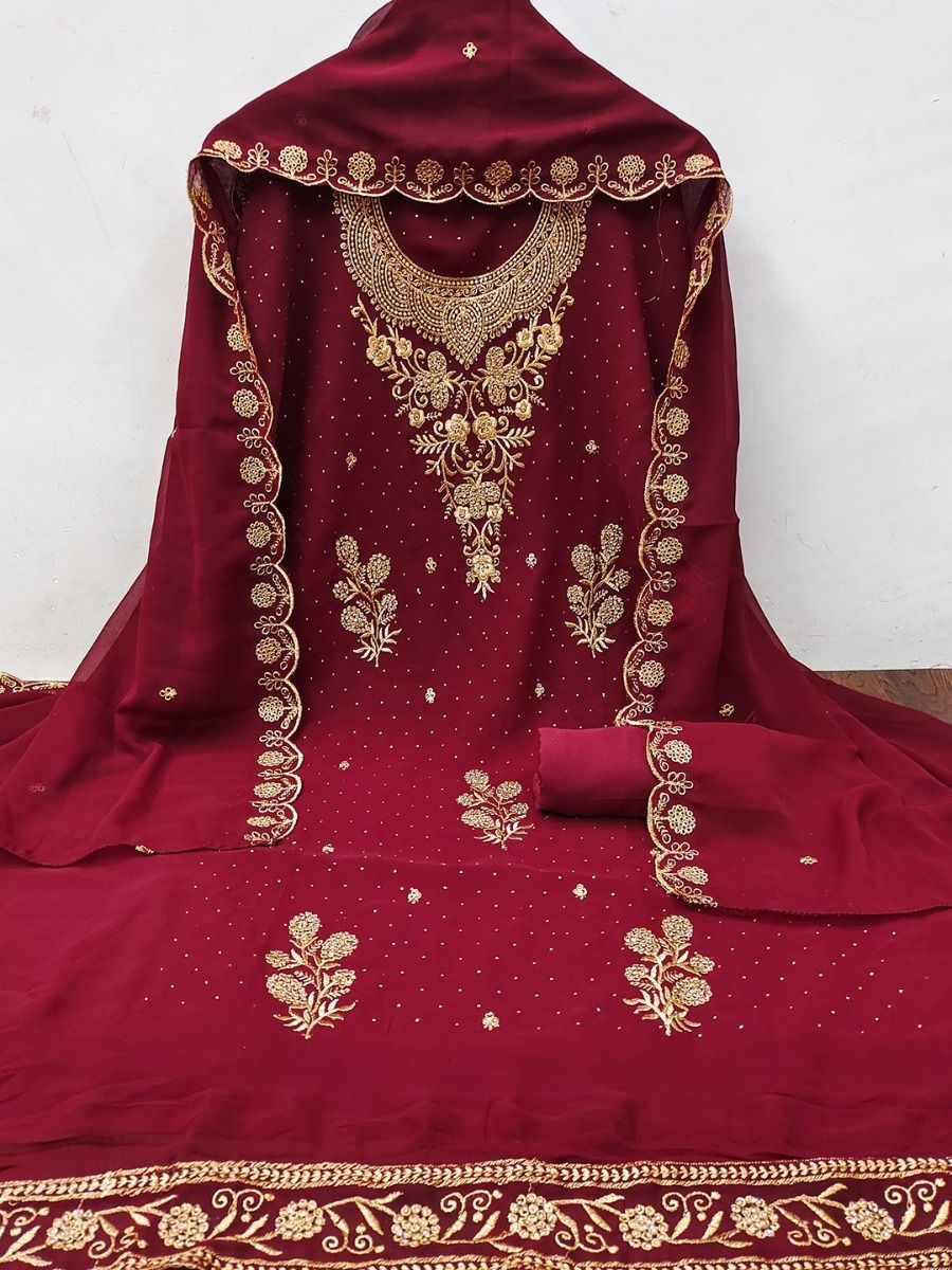 Lightweight chiffon dress material with a soft texture, perfect for making flowy ethnic wear.