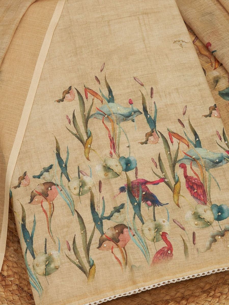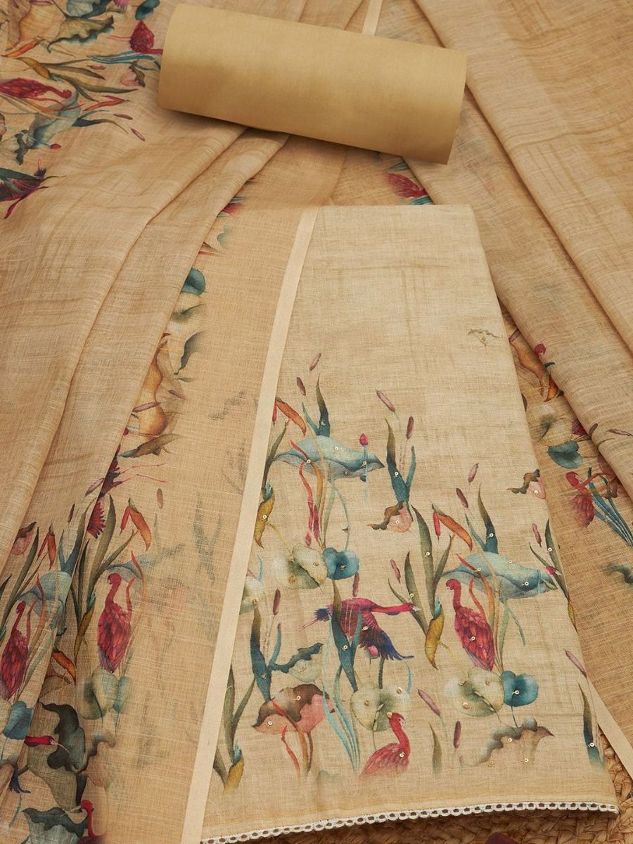 Lightweight and breathable 100% pure linen dress material in a refreshing pastel hue—perfect for comfortable summer elegance
