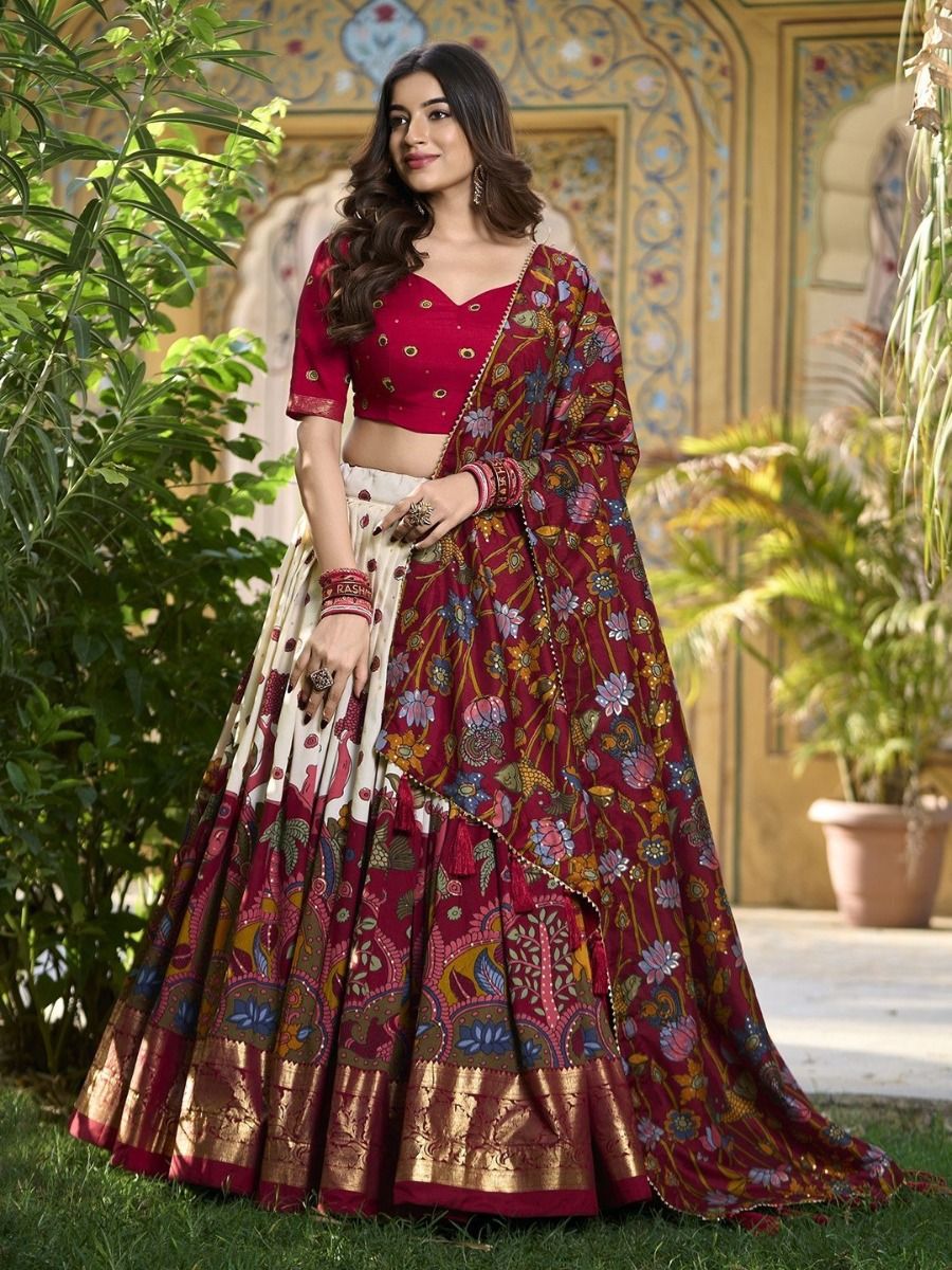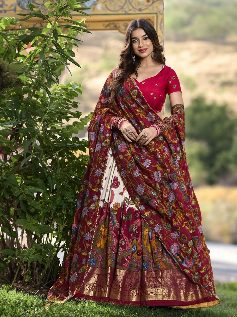 An opulent bridal lehenga in deep crimson red, handcrafted with intricate zardozi embroidery and sequins, paired with a richly adorned blouse and sheer dupatta — perfect for a grand wedding day.